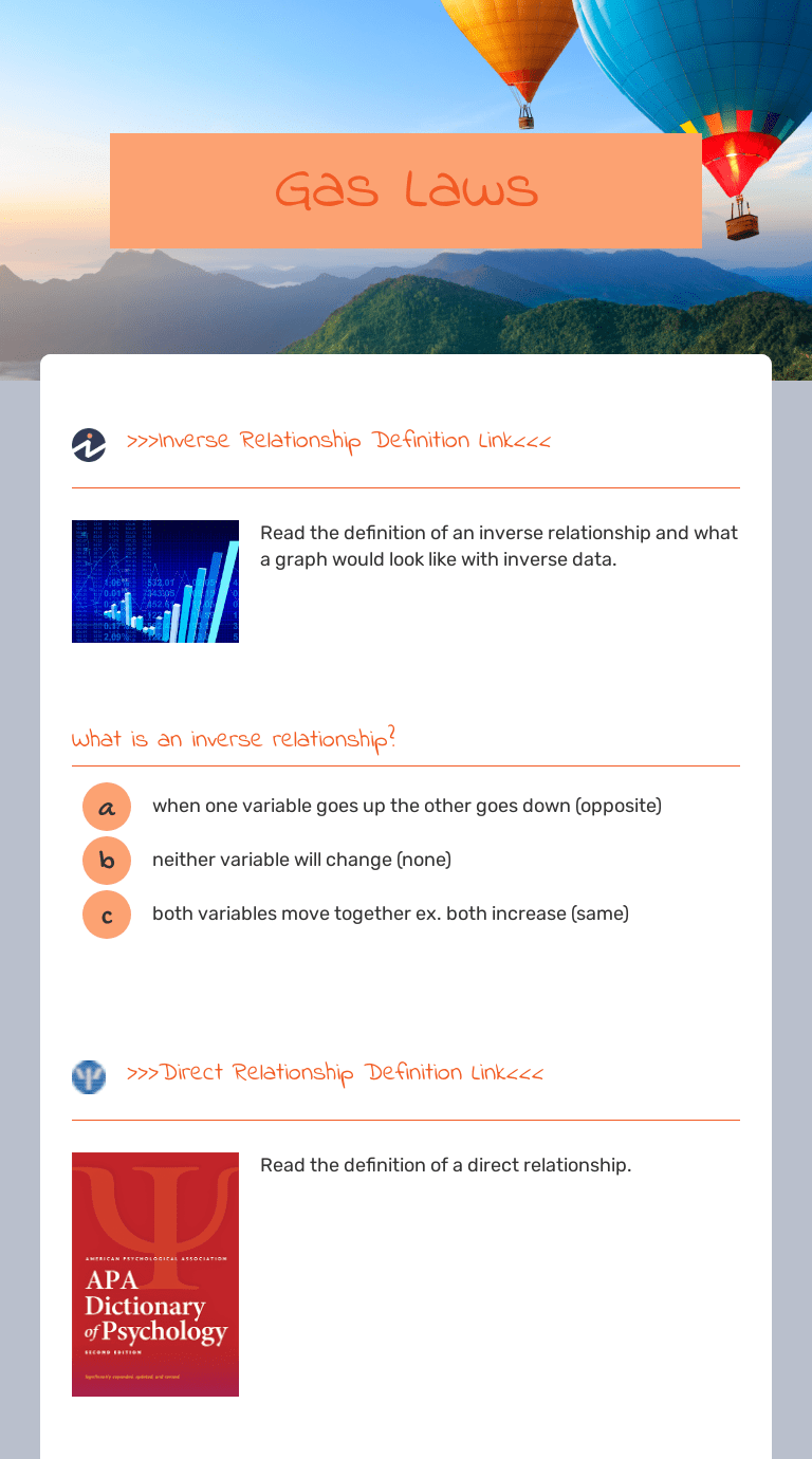 Variables of the ideal gas equation; Any two out of pressure, volume, . Of the variables that were controlled . If you know the number of moles of an ideal gas, you only need to know 2 more variables to recreate the system. Worksheet robert boyle observed the relationship between the pressure and volume for a gas sample. If you know the number of moles of an ideal gas, you only need to know 2 more variables to recreate the system. Variables of the ideal gas equation; In practical terms, it is often difficult to hold any of the variables constant. Assuming there are no leaks in the ball, this illustrates a relationship between which two variables? Gas variables how are the variables that describe a gas related? Gas laws and applications (worksheet). Worksheet robert boyle observed the relationship between the pressure and volume for a gas sample. Good luck comrades gas variables how are the variables that describe gas related? Doc direct and inverse proportions worksheet (doc 61 kb). It is the gas variables pogil. This shows the relationship between a gas's pressure (p), temperature (t), volume (v), and amount in moles (n). You need a nonflexible container to contain a gas with an internal pressure that differs from the external pressure. Doc comparison of real and ideal gases (doc 25 kb). If you know the number of moles of an ideal gas, you only need to know 2 more variables to recreate the system. Any two out of pressure, volume, . You need a nonflexible container to contain a gas with an internal pressure that differs from the external pressure. Assuming there are no leaks in the ball, this illustrates a relationship between which two variables? Gas pressure worksheet (doc 25 kb). In practical terms, it is often difficult to hold any of the variables constant. Gas variables how are the variables that describe a gas related? Doc comparison of real and ideal gases (doc 25 kb). If you know the number of moles of an ideal gas, you only need to know 2 more variables to recreate the system. Gas pressure worksheet (doc 25 kb). Good luck comrades gas variables how are the variables that describe gas related? When there is a change in pressure, volume and temperature, the combined . Gas laws and applications (worksheet). Doc direct and inverse proportions worksheet (doc 61 kb). It is the gas variables pogil. Assuming there are no leaks in the ball, this illustrates a relationship between which two variables? This shows the relationship between a gas's pressure (p), temperature (t), volume (v), and amount in moles (n). Any two out of pressure, volume, . Gas variables how are the variables that describe a gas related? Assuming there are no leaks in the ball, this illustrates a relationship between which two variables? You need a nonflexible container to contain a gas with an internal pressure that differs from the external pressure. Doc comparison of real and ideal gases (doc 25 kb). When there is a change in pressure, volume and temperature, the combined . Good luck comrades gas variables how are the variables that describe gas related? When there is a change in pressure, volume and temperature, the combined . They studied the relationship between two of the variables, holding the others constant. In practical terms, it is often difficult to hold any of the variables constant. Gas variables how are the variables that describe a gas related? Variables of the ideal gas equation; Of the variables that were controlled . Gas laws and applications (worksheet). You need a nonflexible container to contain a gas with an internal pressure that differs from the external pressure. Doc comparison of real and ideal gases (doc 25 kb). This shows the relationship between a gas's pressure (p), temperature (t), volume (v), and amount in moles (n). Gas pressure worksheet (doc 25 kb). Worksheet robert boyle observed the relationship between the pressure and volume for a gas sample. Gas Variables Worksheet / Gavin Gutowsky Chemistry Blog Gas Variables Pogil /. Gas variables how are the variables that describe a gas related? Doc comparison of real and ideal gases (doc 25 kb). Assuming there are no leaks in the ball, this illustrates a relationship between which two variables? When there is a change in pressure, volume and temperature, the combined . Doc direct and inverse proportions worksheet (doc 61 kb).